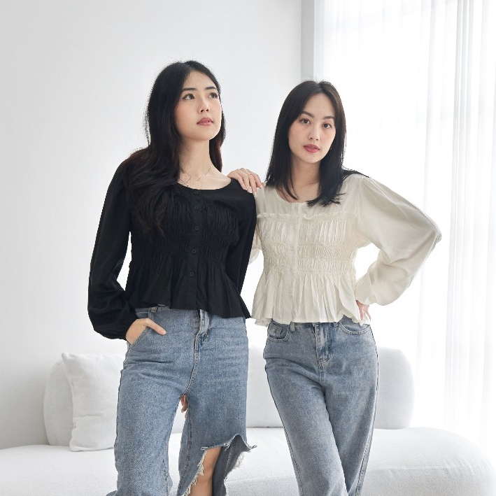 Blouse Wanita Smock 0702 Katun Tenzel Primacool Polos Lengan Karet Panjang