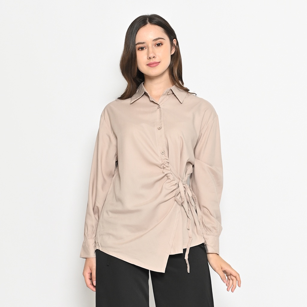 Kemeja Blouse Casual Wanita 0470 Katun Primacool Polos Premium Lengan Panjang
