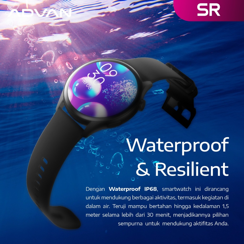 ADVAN Smartwatch SR | Amoled Display 1.43" | Bluetooth Call | Ai Voice Assistant | Waterproof IP68 | Bluetooth 5.2 | 10