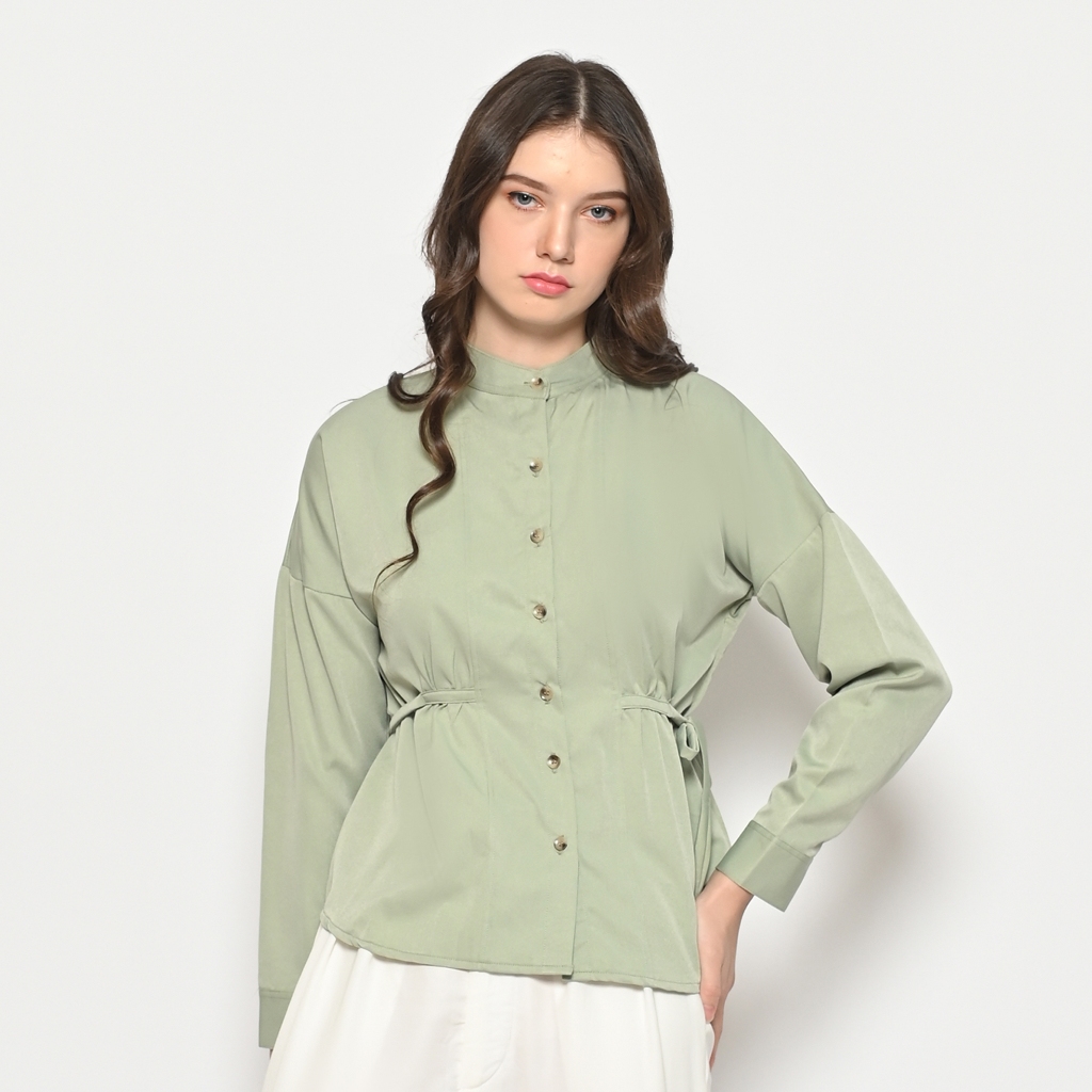 Kemeja Casual Wanita 0397 Katun Donna Polos Lengan Panjang Korean Style