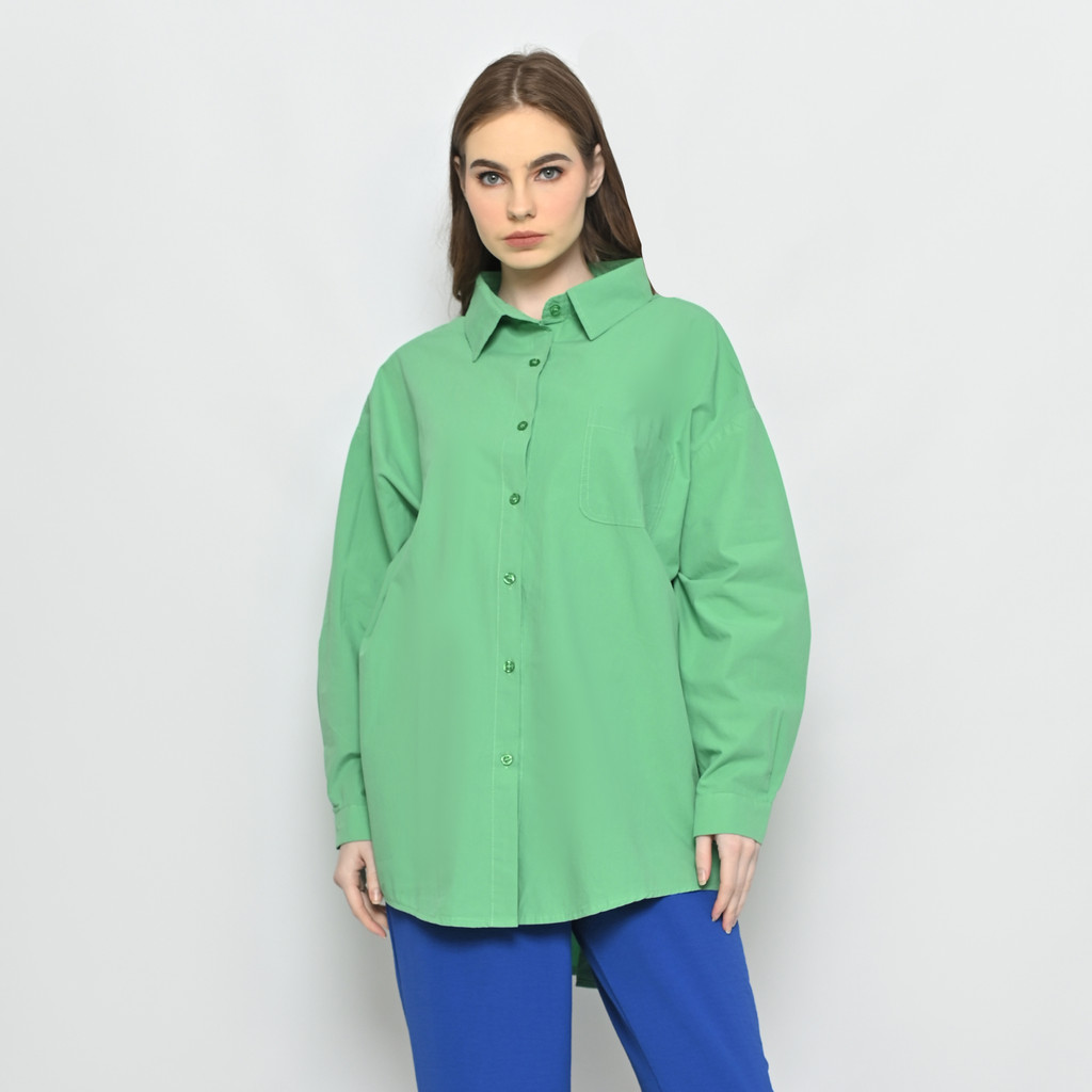 Kemeja Wanita Oversize 98023 Cotton Denim Wash Polos Lengan Panjang