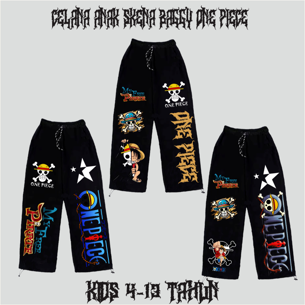Celana Anak Tanggung Skena Baggy One Piece Hitam Panjang