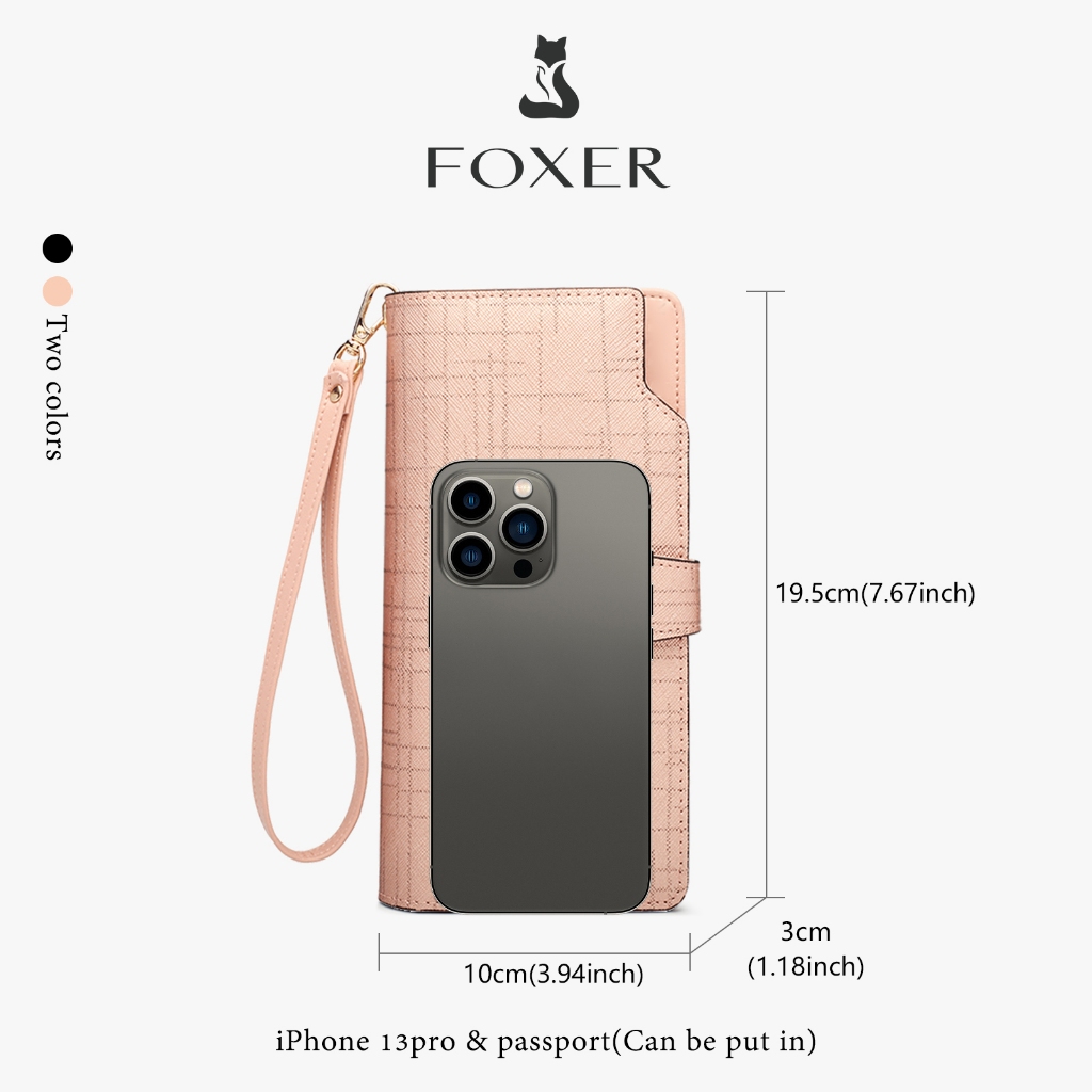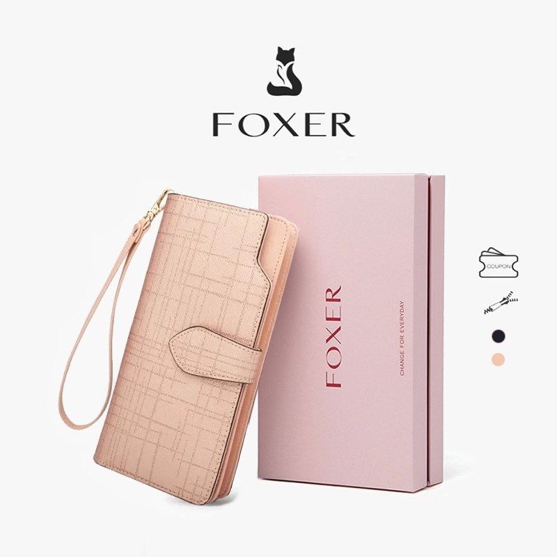 FOXER Dompet Panjang Dompet Kulit Sapi Tempat Kartu Lipat Tempat Kartu Kredit Hadiah Untuk Cewek