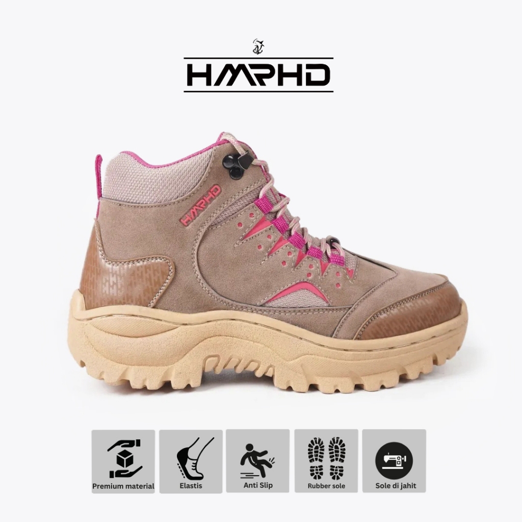 HMRHD Sepatu Gunung Wanita Mako High Cream Pink Boots Outdoor Touring