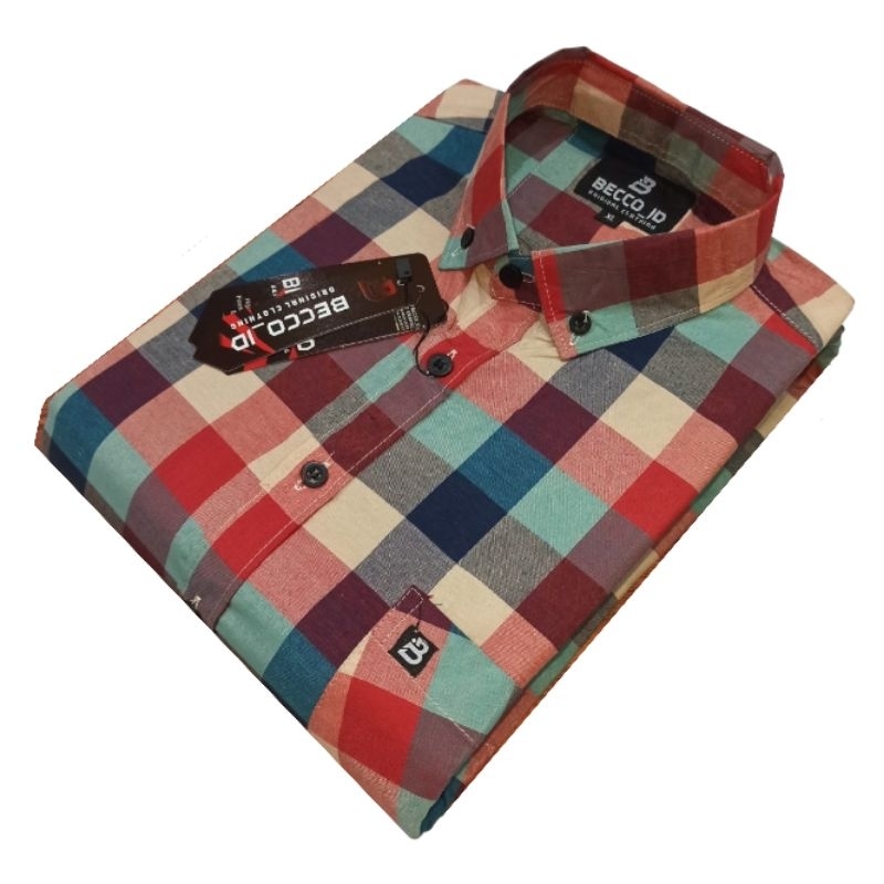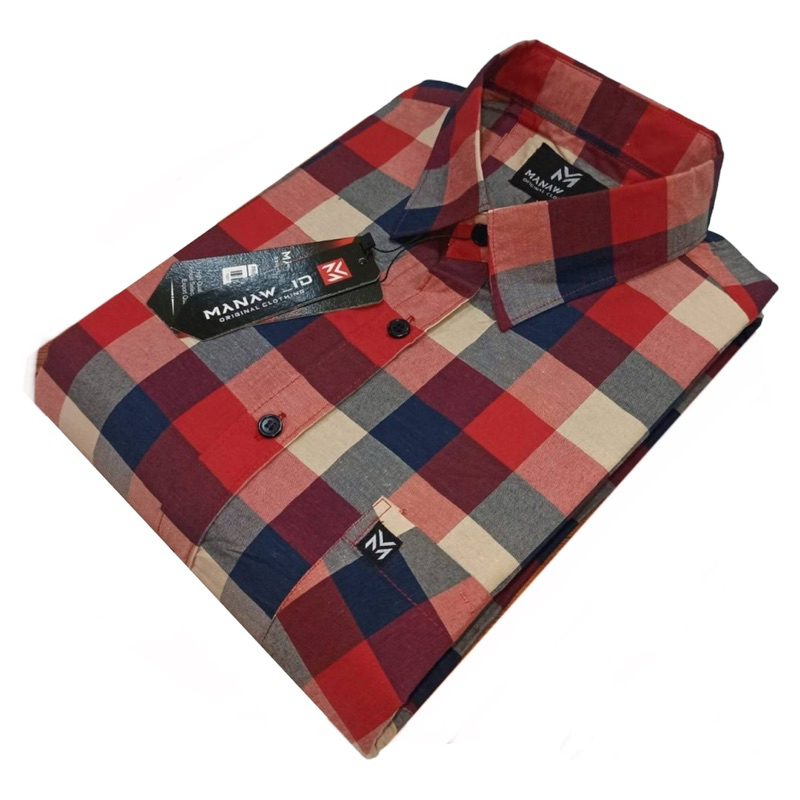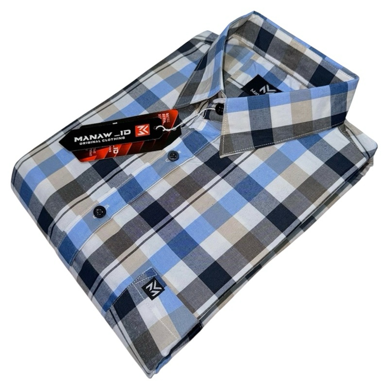 Kemeja Katun Pria Lengan Pendek Formal Casual Premium Import Hem Kotak Kantor Kuliah Seragam M L XL Alisan