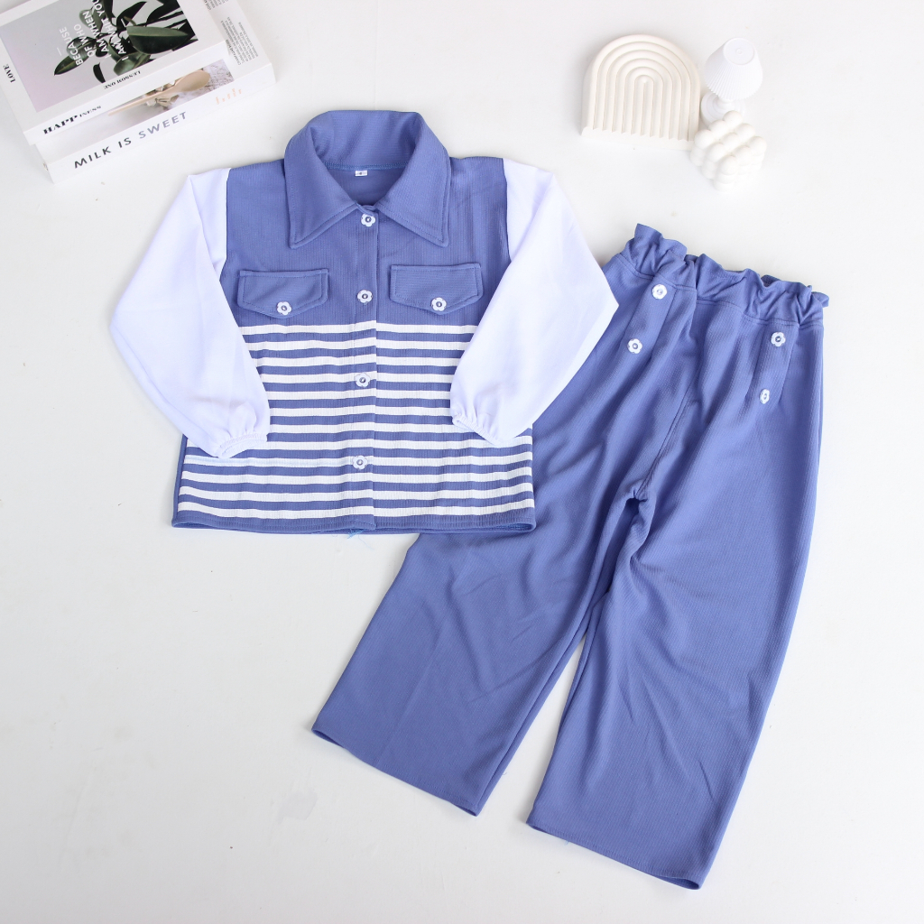 Setelan Anak Perempuan Camila I Motif Salur Bahan Knit 3-12 Tahun Fashion Anak Cewe