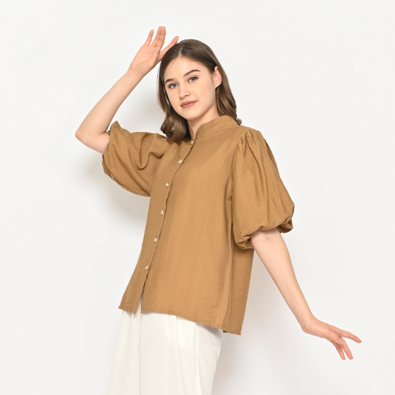 Kemeja Wanita Shanghai 0197 Linen Polo Polos Lengan Balon Pendek