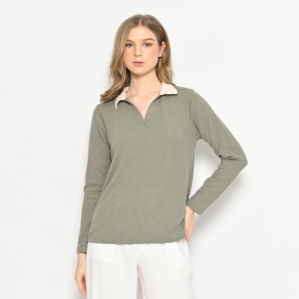 Blouse Casual Wanita 0538 Rib Knit Stretch Polos Premium Lengan Panjang