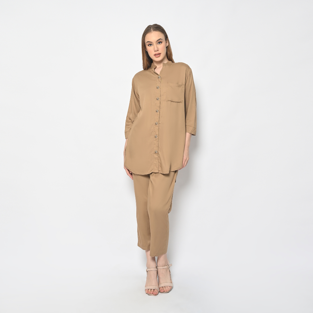 One-Set 0086 Setelan Wanita Katun Rayon Twill Maxi Polos Lengan Panjang