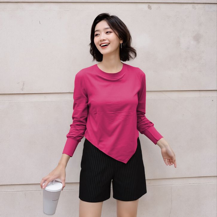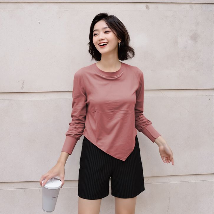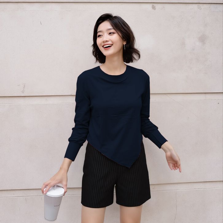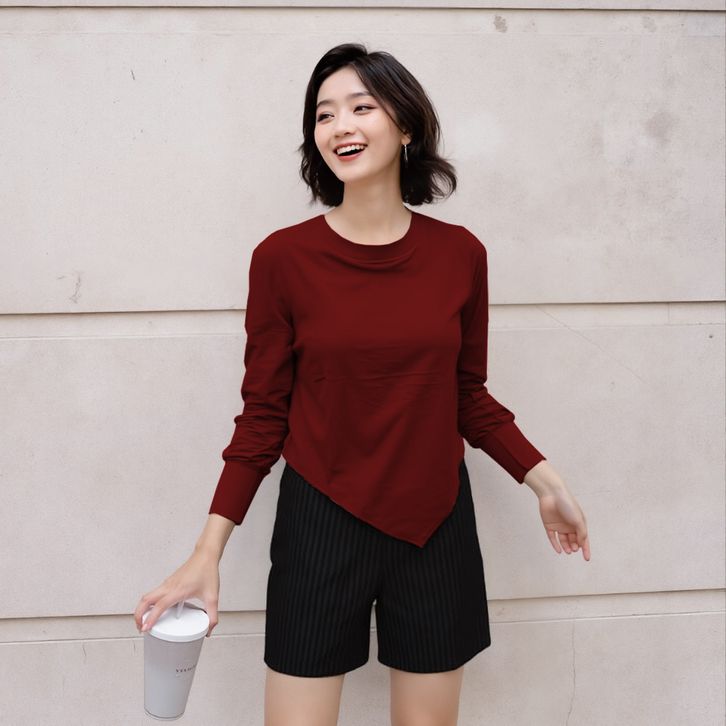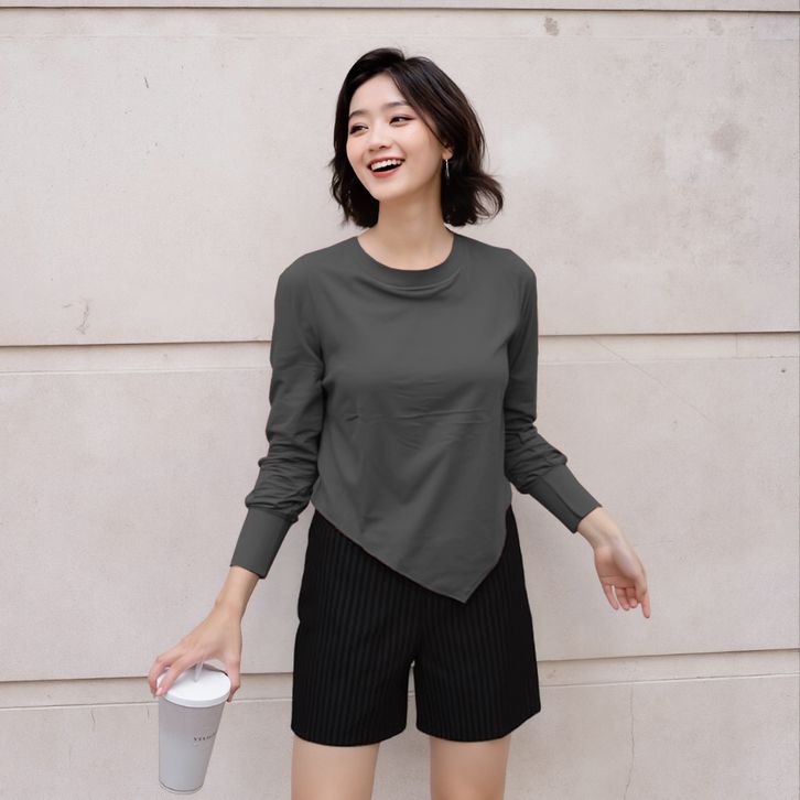 Tshirt Atasan Wanita Lengan Panjang Asymmetric Kaos Wanita O Neck Long Sleeve 919