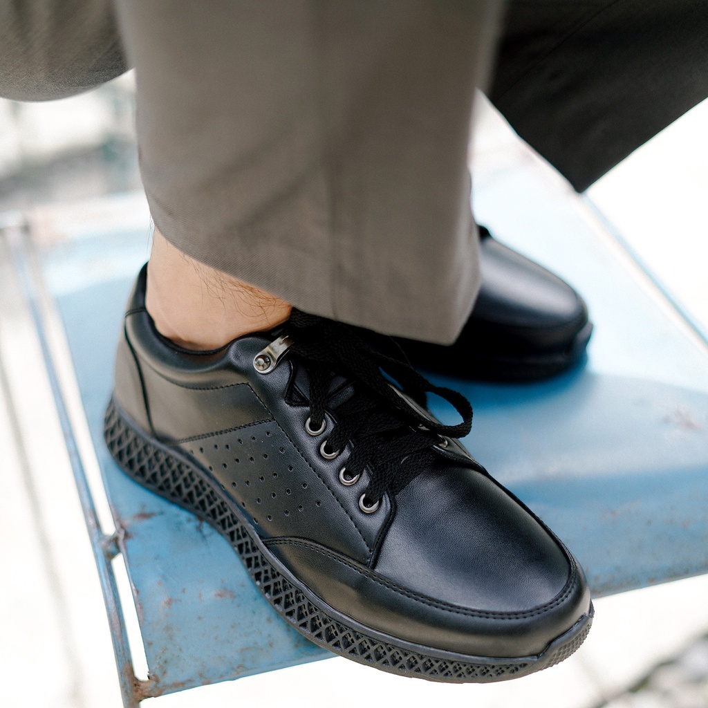 JYF - Lux Black Sepatu Pantofel Formal Pria Formal Casual Kulit Kerja Resmi