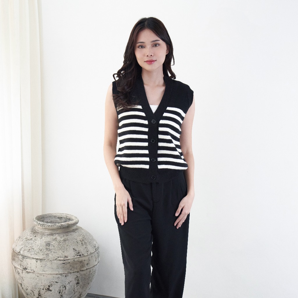 Vest Wanita Rajut 881 Mix Knit Motif Salur Tanpa Lengan