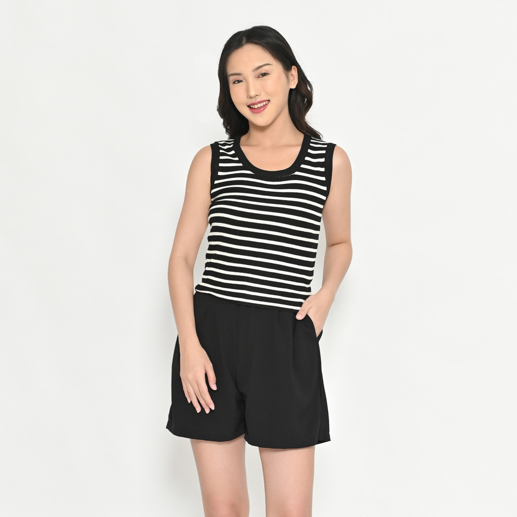 Tanktop Wanita Rajut 253 Polyester Nylon Knit Motif Salur Tanpa Lengan