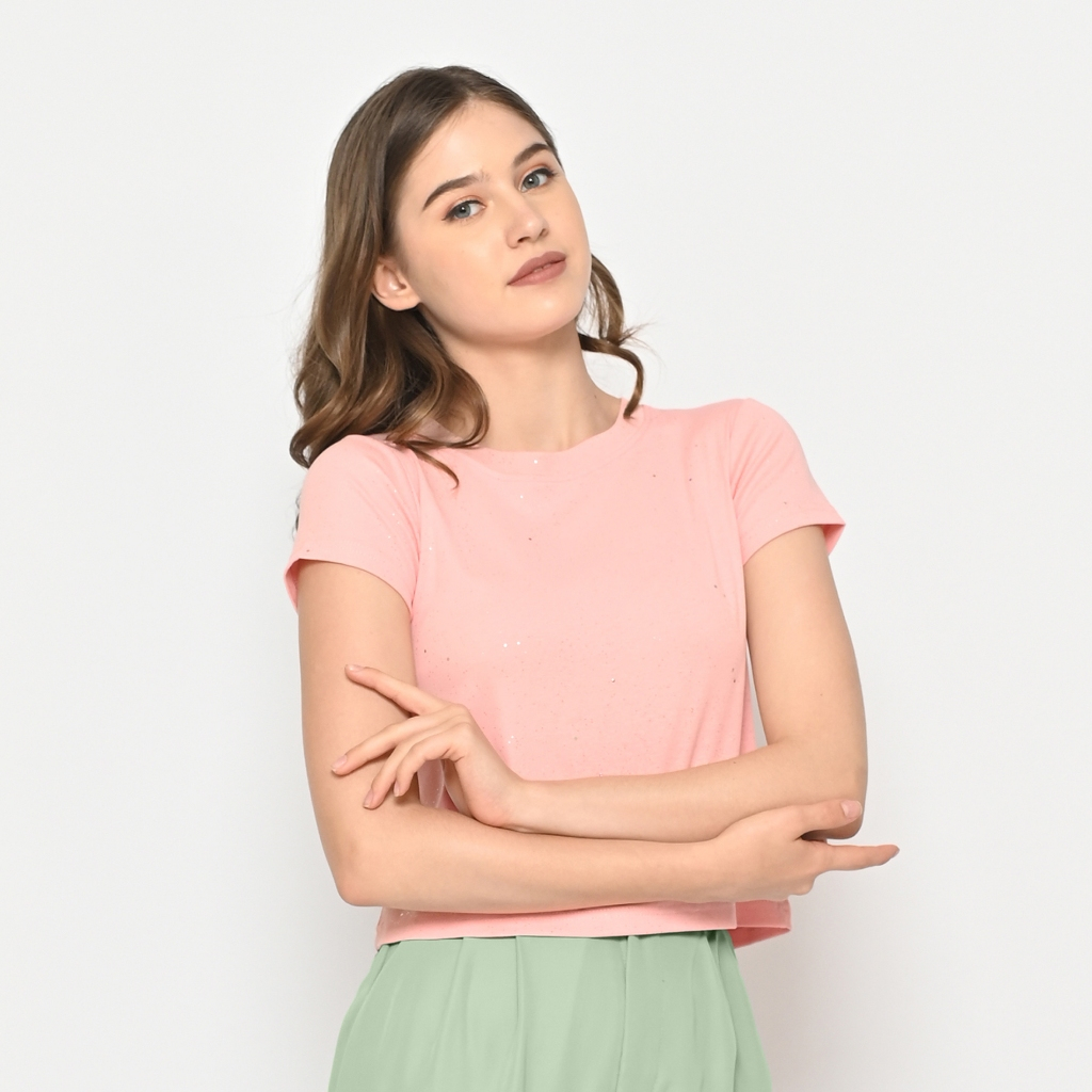 Kaos Crop Wanita 0217 Katun Glitter Stretch Premium Lengan Pendek