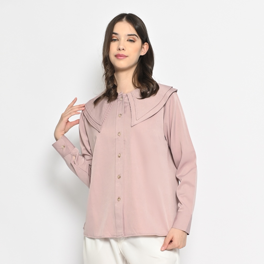 Kemeja Casual Wanita 0366 Katun Donna Polos Lengan Panjang Korean Style
