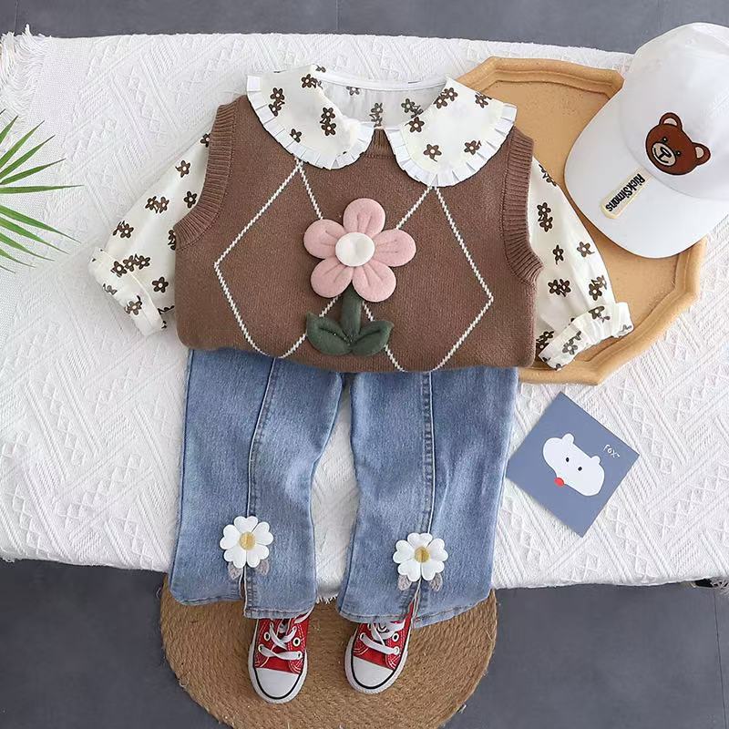 baju setelan knit 2IN1 premium anak perempuan usia 1-4thh /baju jeans set