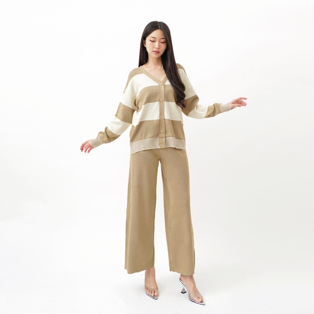 One-Set Wanita Cardigan Rajut V-Neck 86086 Viscose Polyamide Knit Motif Salur Lengan Panjang