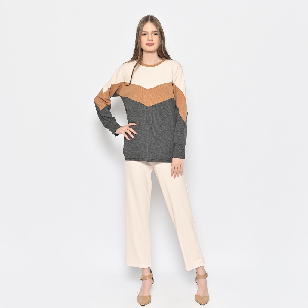 One-Set 0311 Setelan Wanita Rib Knit Stretch Polos Kombinasi Premium Lengan Panjang