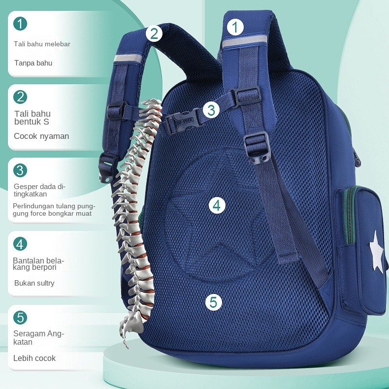 Tas Sekolah Anak Anti Beban Ransel Pelindung Tulang Belakang Kapasitas Besar Tahan Air Backpacks Tas Sekolah SD & SMP