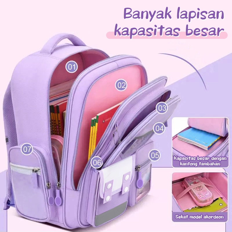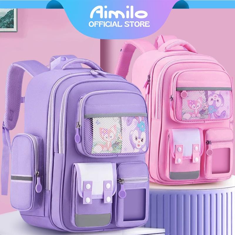 [READY] Aimilo Tas Sekolah Anak Perempuan Tas Ransel Anak SD Lucu Perlindungan Tulang Belakang Ilmiah Anti Air Ringan SD