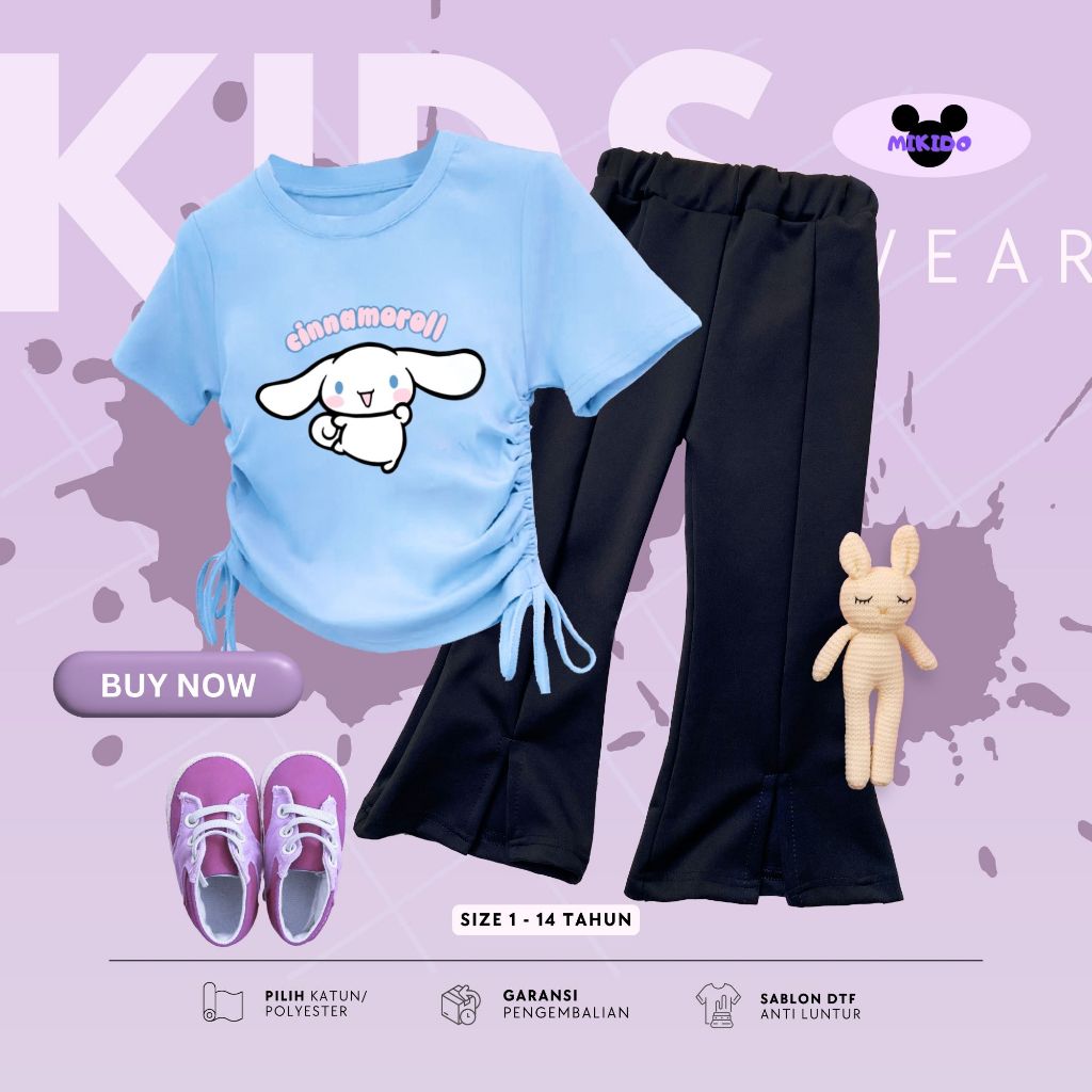 Setelan Kaos Serut Crop Top dan Cutbray Belah Anak Perempuan Kuromi Umur 1-14 tahun Part 1