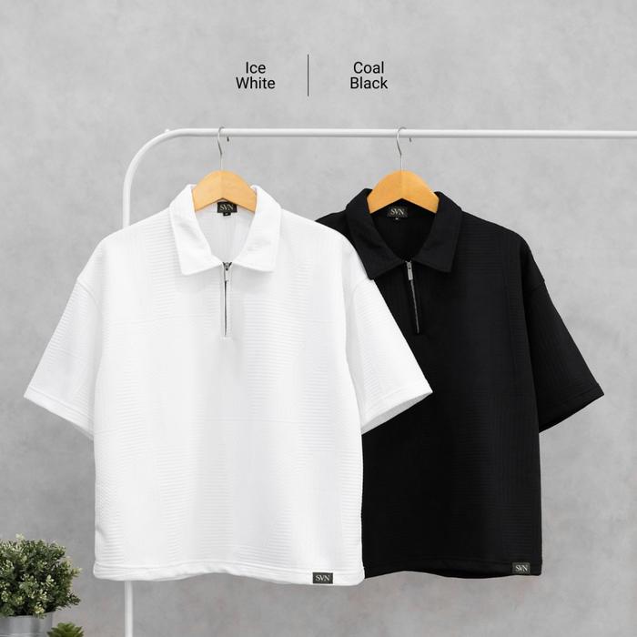 SANVANINA ZUMA ZIPPER BOXY POLO SHIRT | KAOS POLO KNIT PRIA | ATASAN PRIA BERKERAH BOXY FIT CUTTING - ZUMA COAL BLACK, M