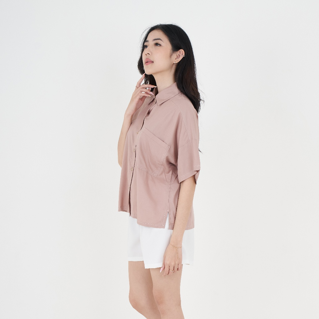Kemeja Wanita Casual 0624 Katun Tenzel Primacool Polos Lengan Pendek