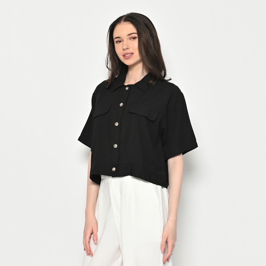 Kemeja Crop Casual Wanita 0407 Katun Rayon Polos Premium Lengan Pendek
