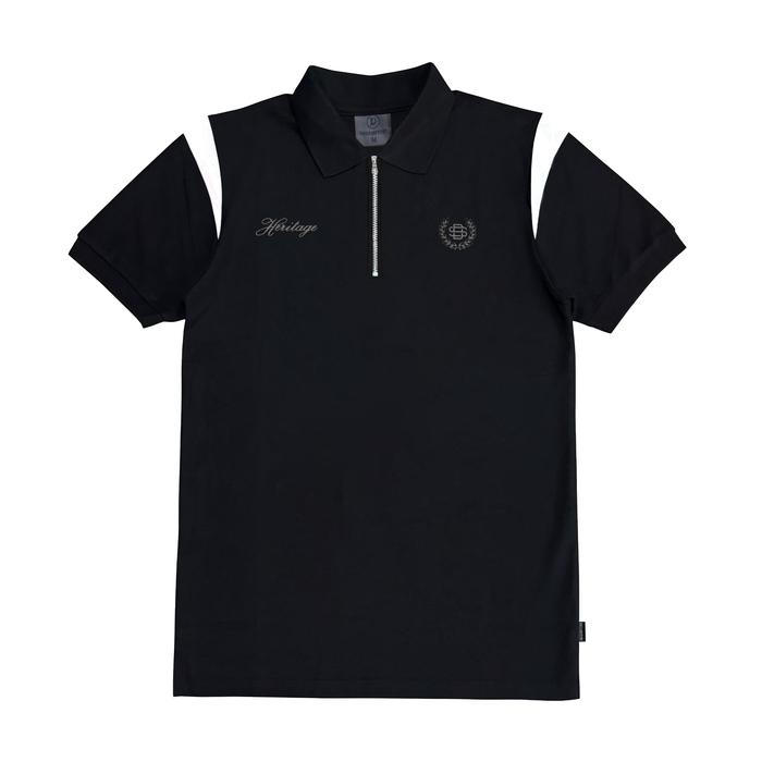 POLO SHIRT DREAMSTORY ZERRO HERITAGE ZIP COTTON LACOS HIGH QUALITY - BLACK, XL