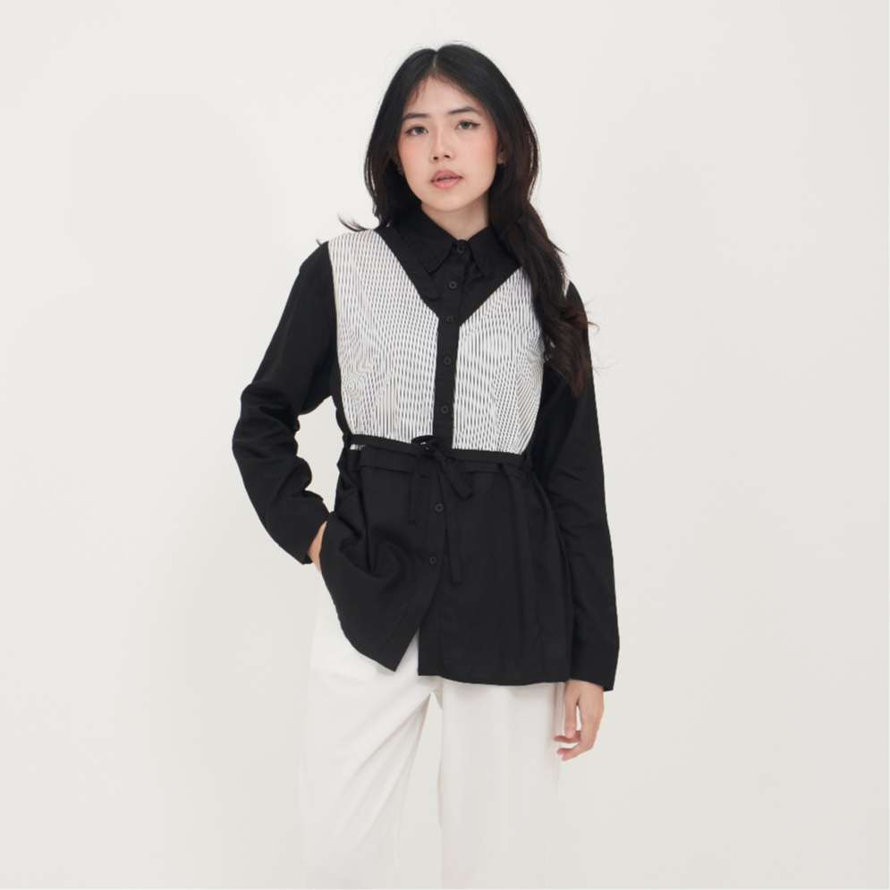 Kemeja Wanita Kombinasi 0750 Katun Tenzel Primacool Polos Mix Katun Salur Lengan Panjang