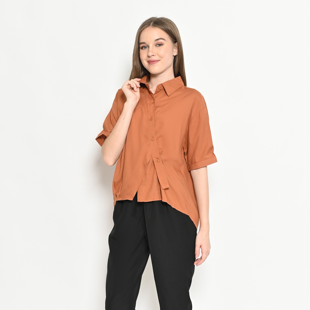 Kemeja Wanita Asimetris 0468 Katun Tenzel Primacool Polos Lengan Pendek