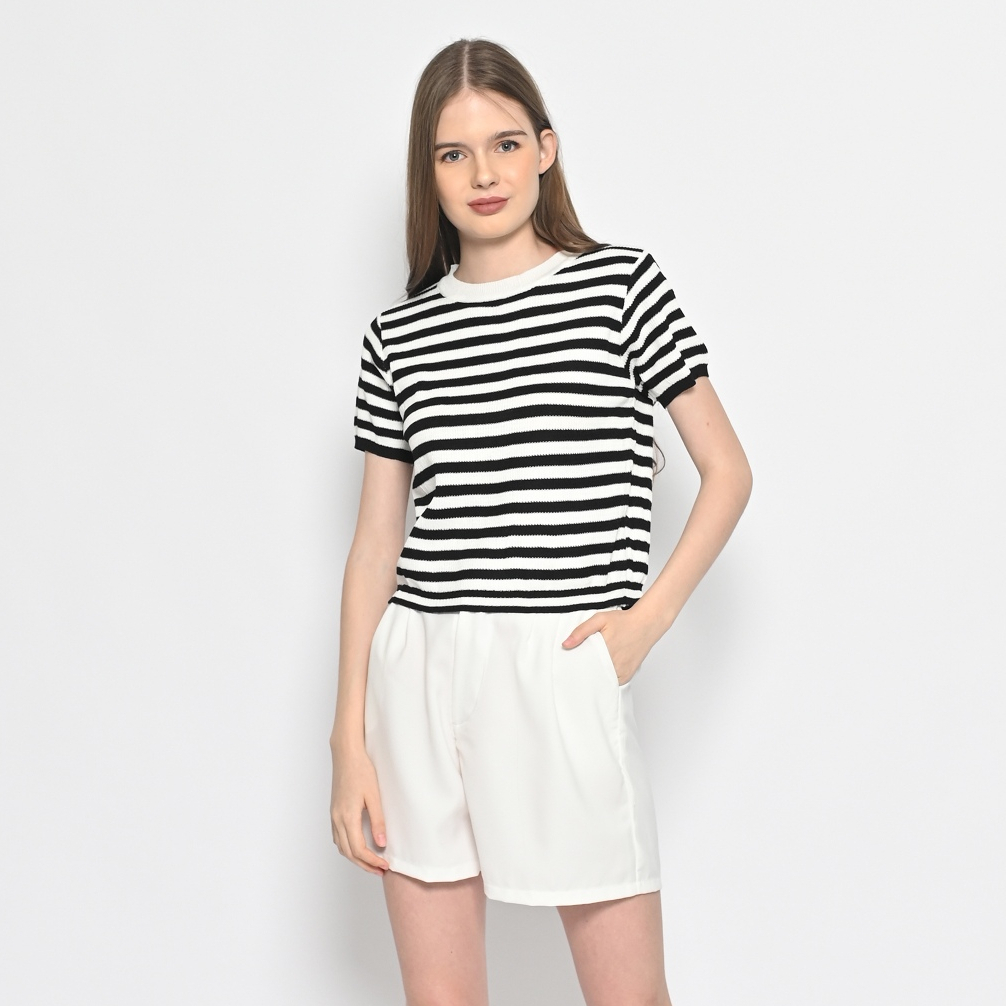 Kaos Crop Wanita 2306 Rajut Knit Stretch Lengan Pendek