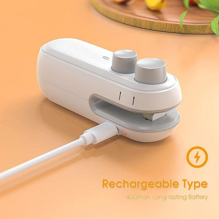 2 In 1 Alat Press Perekat Peng3m45 Klip Segel Plastik Makanan Snack Hand Sealer Mini USB Rechargeable