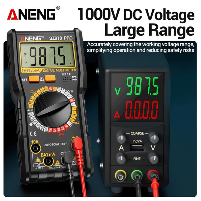 Aneng SZ818 PRO Plus Multimeter Rechargeable Lithium Battery Digital Multitester Test Zero/Fire Wire