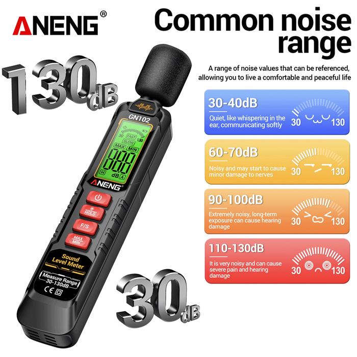 Aneng GN102 Sound Noise Level Meter Digital Alat Pengukur Suara 30-130dB Windproof Sponge Cover