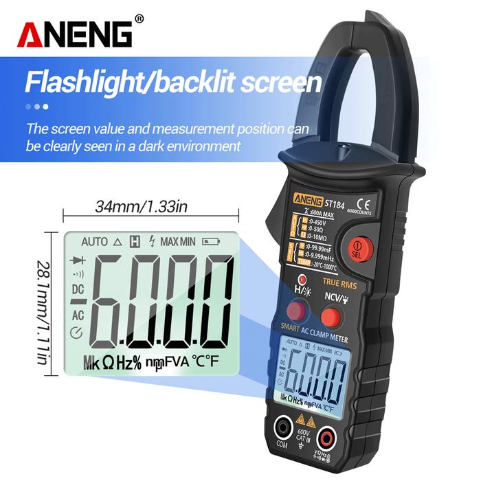 Aneng ST184 Tang Ampere Clamp Meter Voltage AC/DC 6000 Counts Original