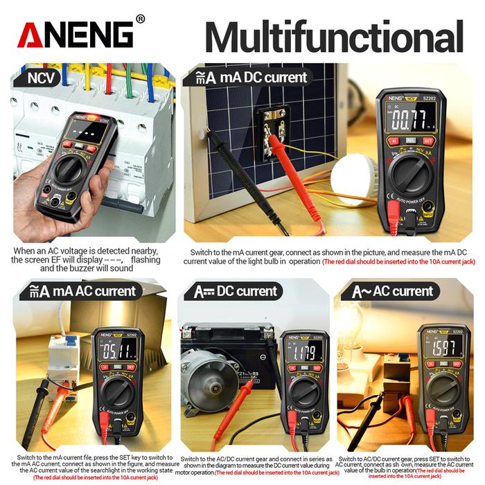 Aneng SZ202 Digital Multimeter Tester Buzzer AC/DC Voltage 10A Current Resistance Capacitor NCV
