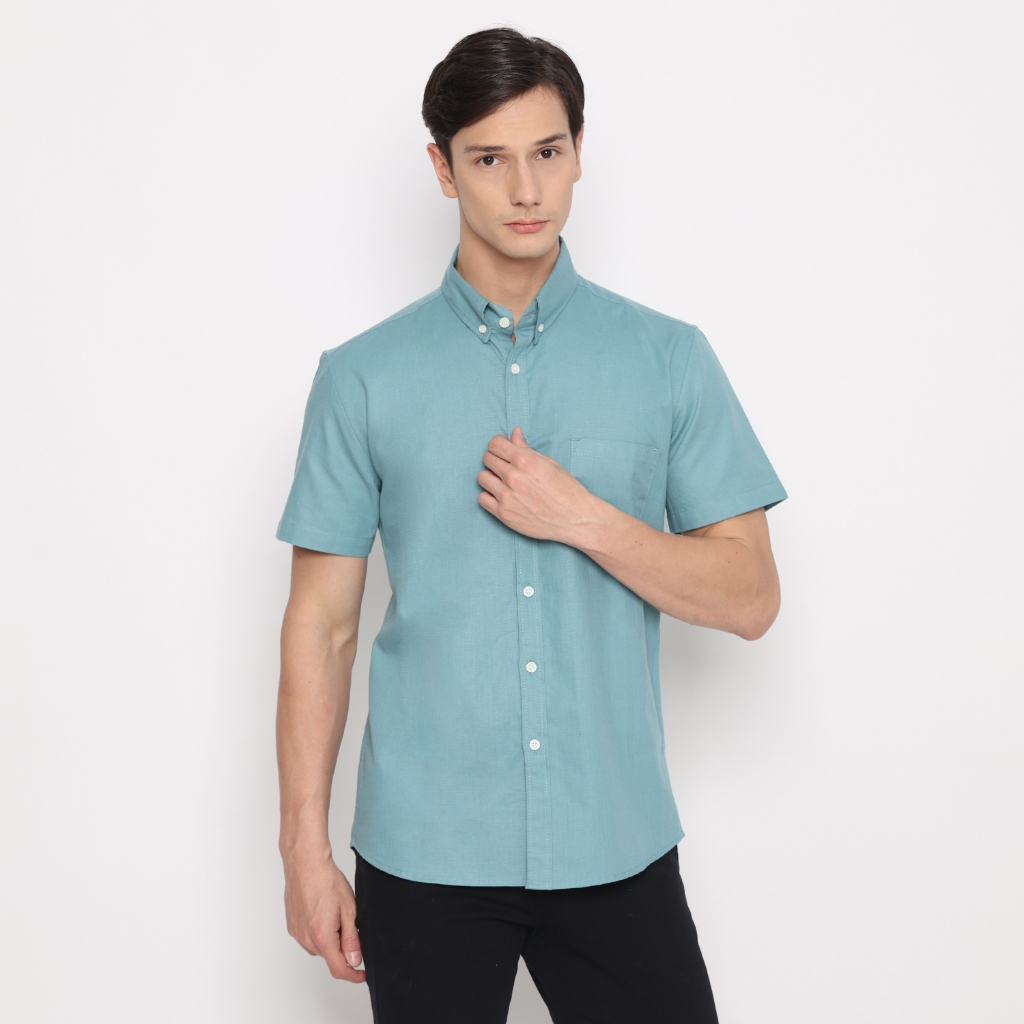 Eniqno - Kemeja Pria Lengan Pendek Katun Sigaret - Sage Green