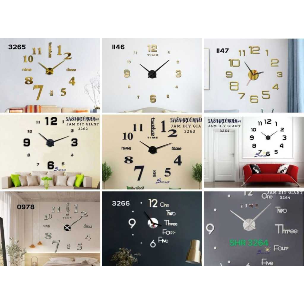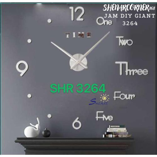 SHENAR JAM DINDING DIY 3D BESAR ANGKA HURUF 3D TEMPEL TEMBOK / JAM DIY GIANT golds SILVER TEMPEL TEMBOK GIANT WALL CLOCK