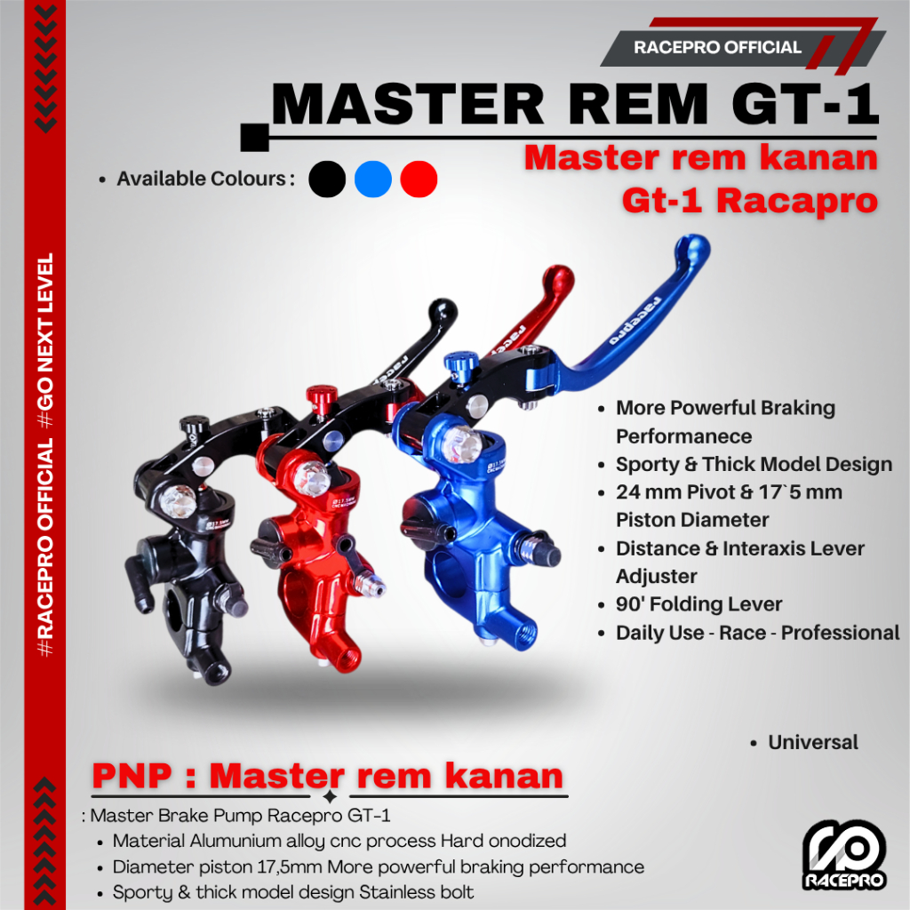 MASTER REM RACEPRO GT1 MASTER BRAKE PUMP GT1 MASTER REM KANAN RACEPRO GT1 SET KOPLING KIRI GT1