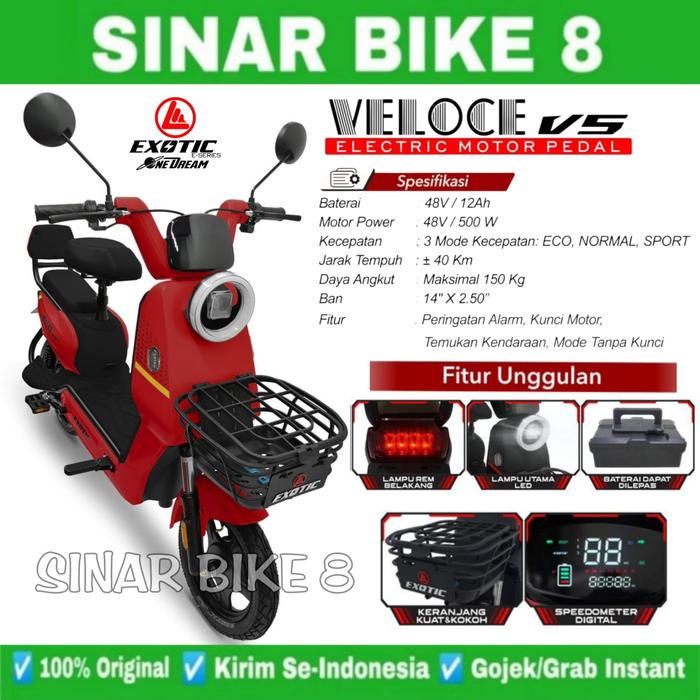 Sepeda Listrik EXOTIC VELOCE V5 V 5 Electric E-bike by PACIFIC 500 Watt