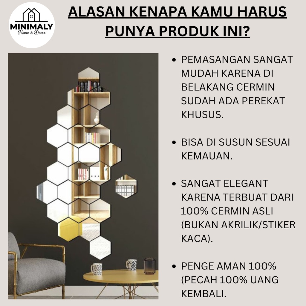 MINIMALY11 Kaca cermin Aesthetic (PAKET ISI 7 PCS) Kaca Aesthetic Kamar Hiasan Dinding Aesthetic Cermin Tempel Dinding C