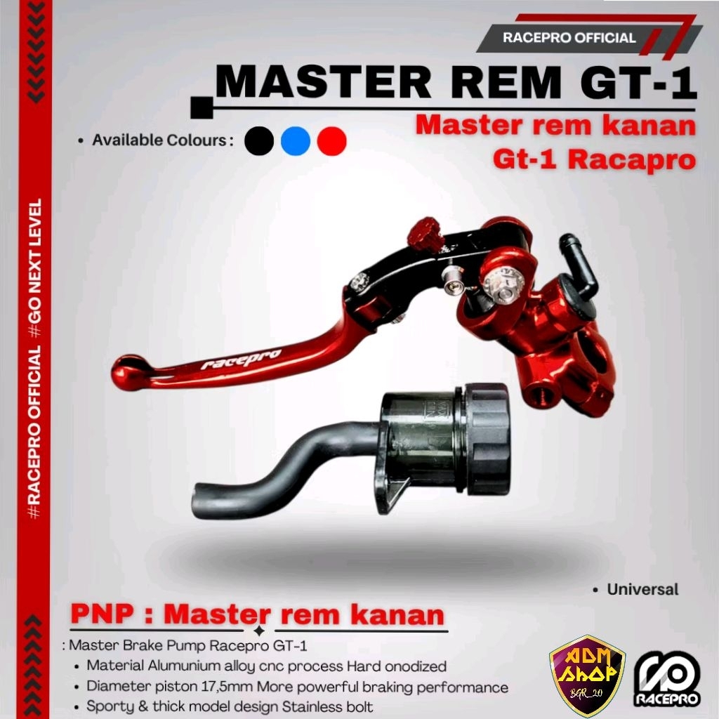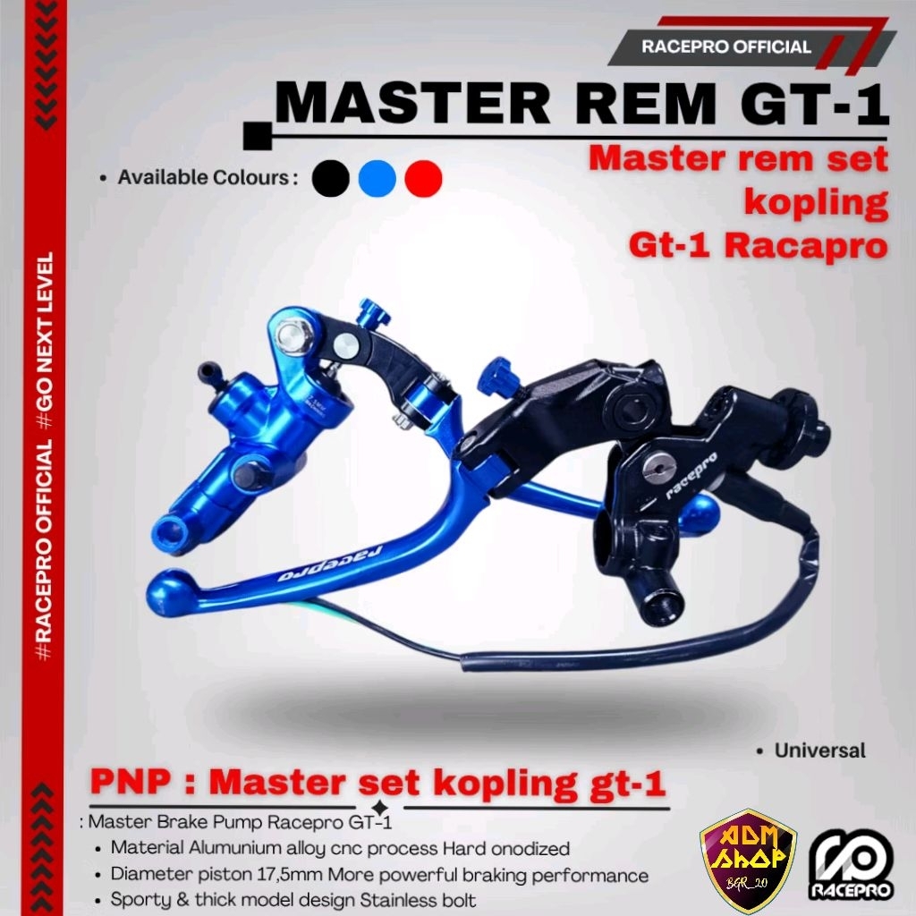 MASTER REM RACEPRO GT-1 17,5 MM MASTER BRAKE PUMP GT-1 MASTER REM KANAN RACEPRO GT-1 SET KOPLING KIRI
