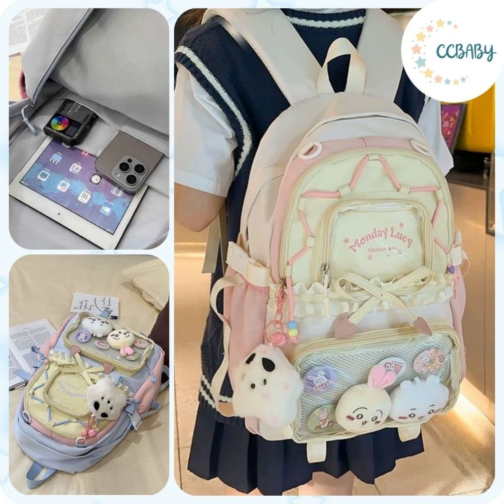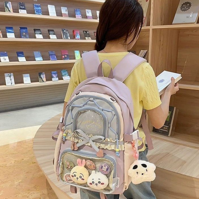 Tas Sekolah Korea Lucu Backpack Wanita SMA Aesthetic Tas Ransel Berkapasitas Besar Macaron Pink Korea Import