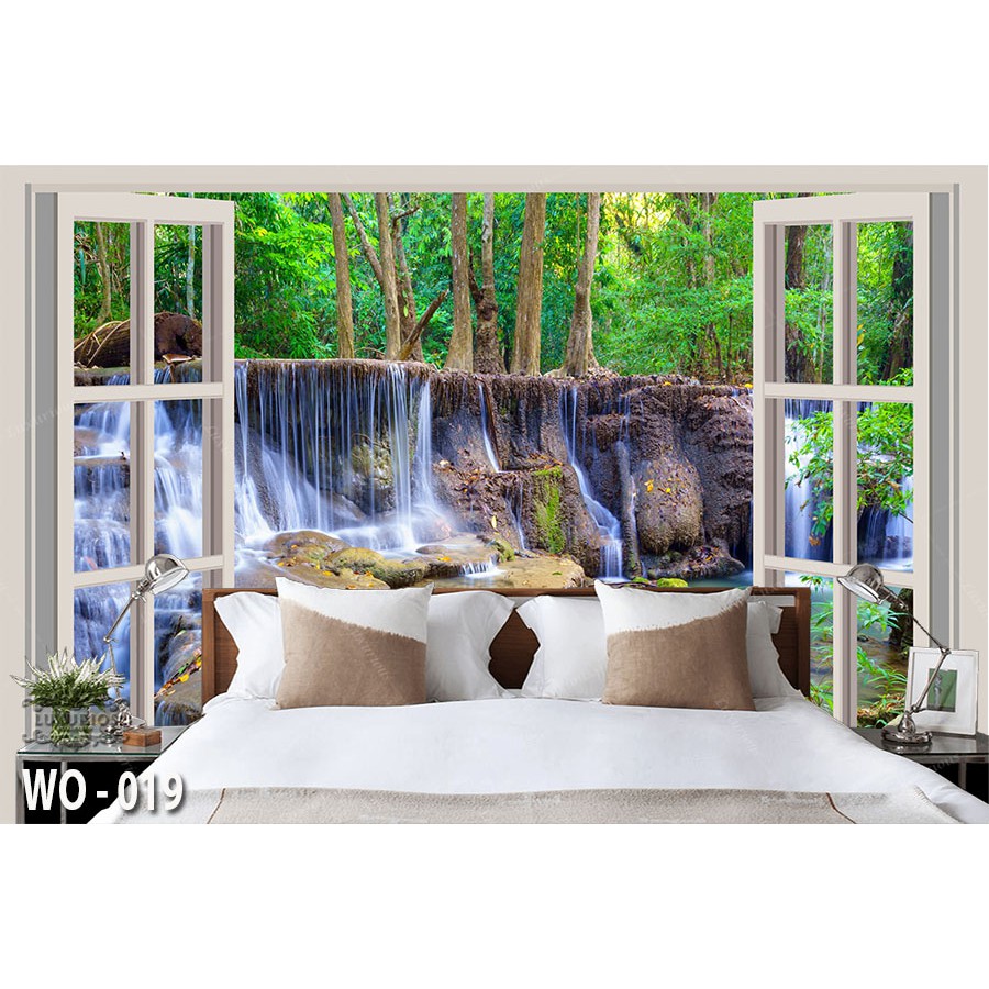 Wallpaper Custom 3D Mural Photowall Air Terjun Walpaper Dekorasi Dinding Kustom Pemandangan Alam Jendela Sticker Hiasan