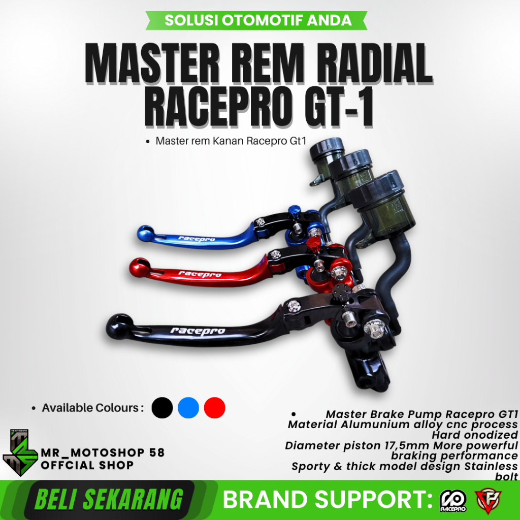 MASTER REM RACEPRO SINGLE RADIAL GT-1 17MM KOPLING KIRI RACE PRO GT1 ALUMINIUM T6 CNC BAUT STAINLESS