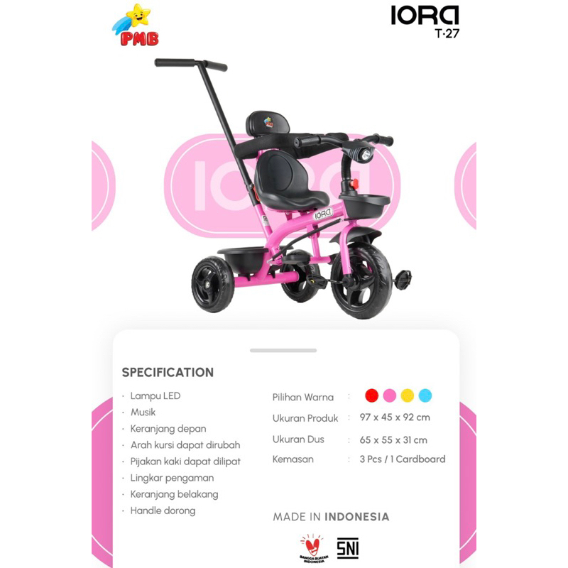 Sepeda Roda Tiga PMB IORA TC03 TC06 T27 T28 T29 NUWA T20-9 Sepeda Anak Tricycle T-27 28 TC-03 TC-06 T 20-9 Roda 3