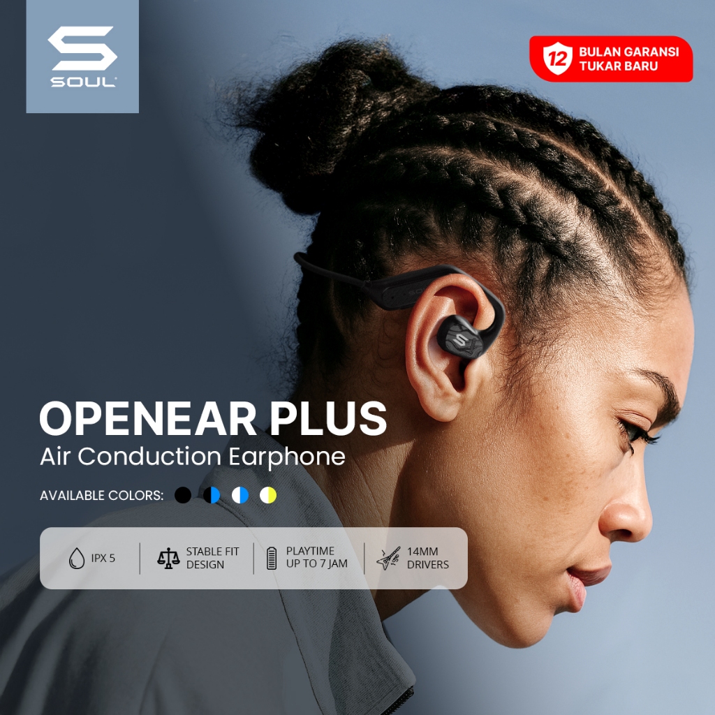 SOUL Open Ear Plus Air Conduction Earphone IPX5 Lightweight Sport Headset Bluetooth Anti Keringat