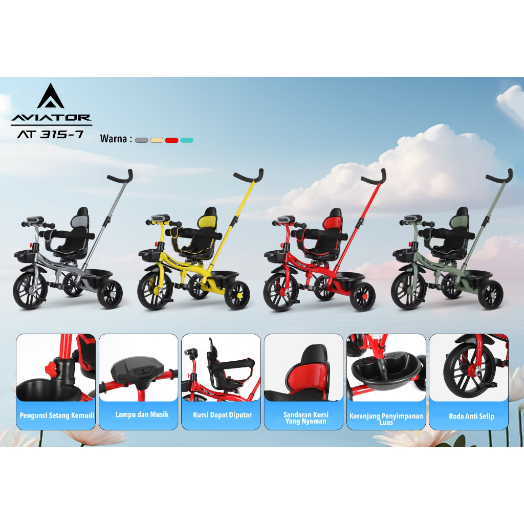 Sepeda Roda Tiga Anak AVIATOR AT315-7 AT306-7 Tricycle Roda 3 AT 315-7 306-7 AT308-7