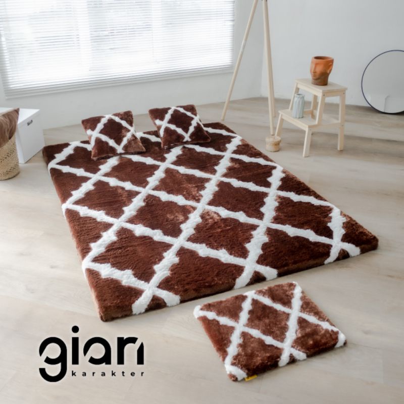 Gian karakter - Karpet Bulu tebal / Kasur lantai Bulu / Busa Motif maroco Coklat III premium Anti Slip Size 200x150cm -